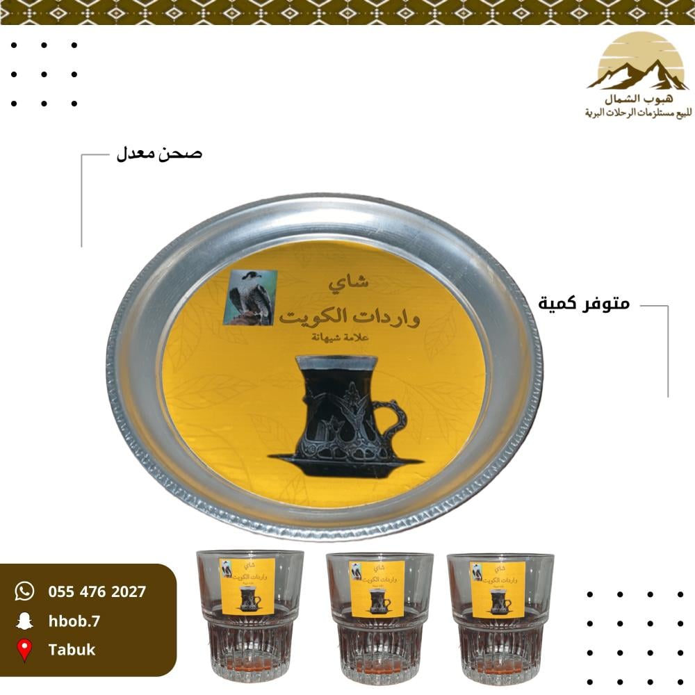 صحن معدل شاهي واردات الخليج لون مع 3 كاسات فرنسية