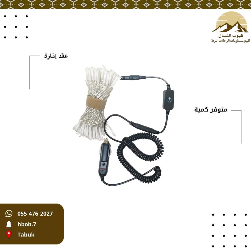عقد إنارة البرق الطول : 10 مترعدد اللمبات : 100ضوء كريميتحكم في قوة الإضائةزر تشغيلولاعة بسلك طوله 2 متروصلة USB-ولاعةجراب